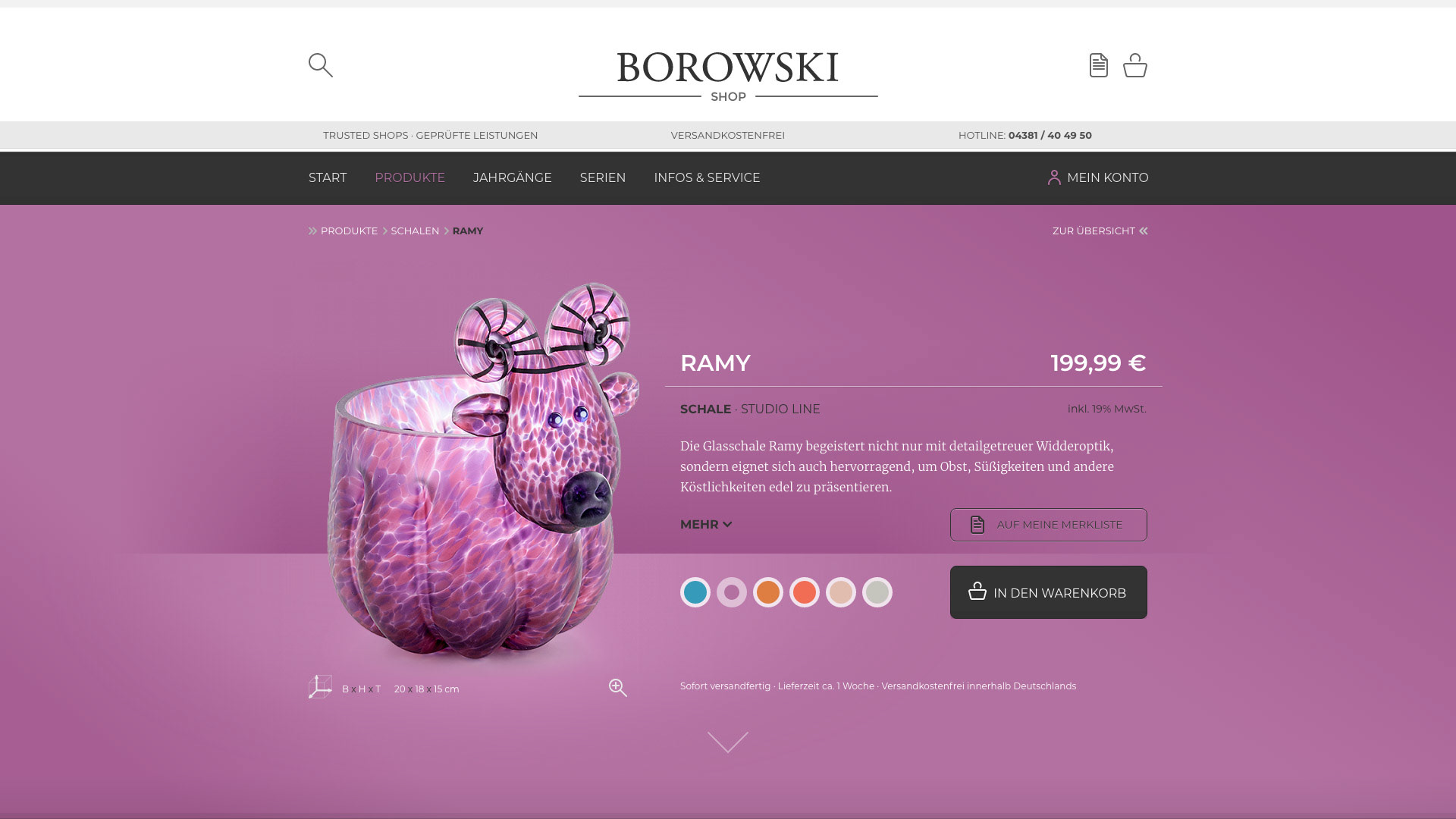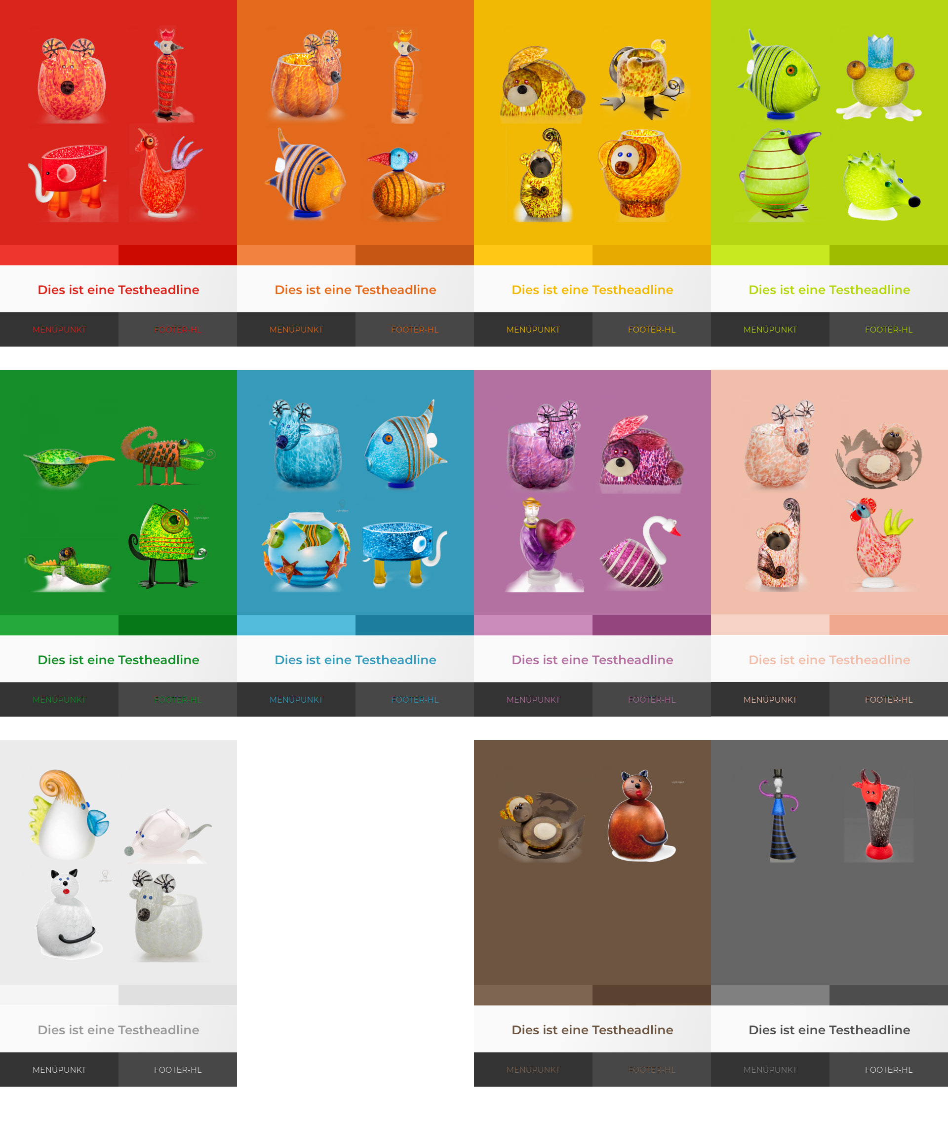 INFO: Die Onlineshops Borowski Shop und Hammerich Modernes Wohnen gehören zusammen. Als exklusiver Händler vertreibt Hammerich die Glaskunst der Manufaktur Borowski in Deutschland. Den farbenfrohen Figuren galt auch das Hauptaugenmerk für mein Shop-Konzept. Das Layout des Shops nimmt sich bewusst zurück, um die Kunstwerke noch besser wirken zu lassen. Um deren Erscheinung zu unterstreichen, färbt sich der Shop in die Farbstimmung des aufgerufenen Objekts.