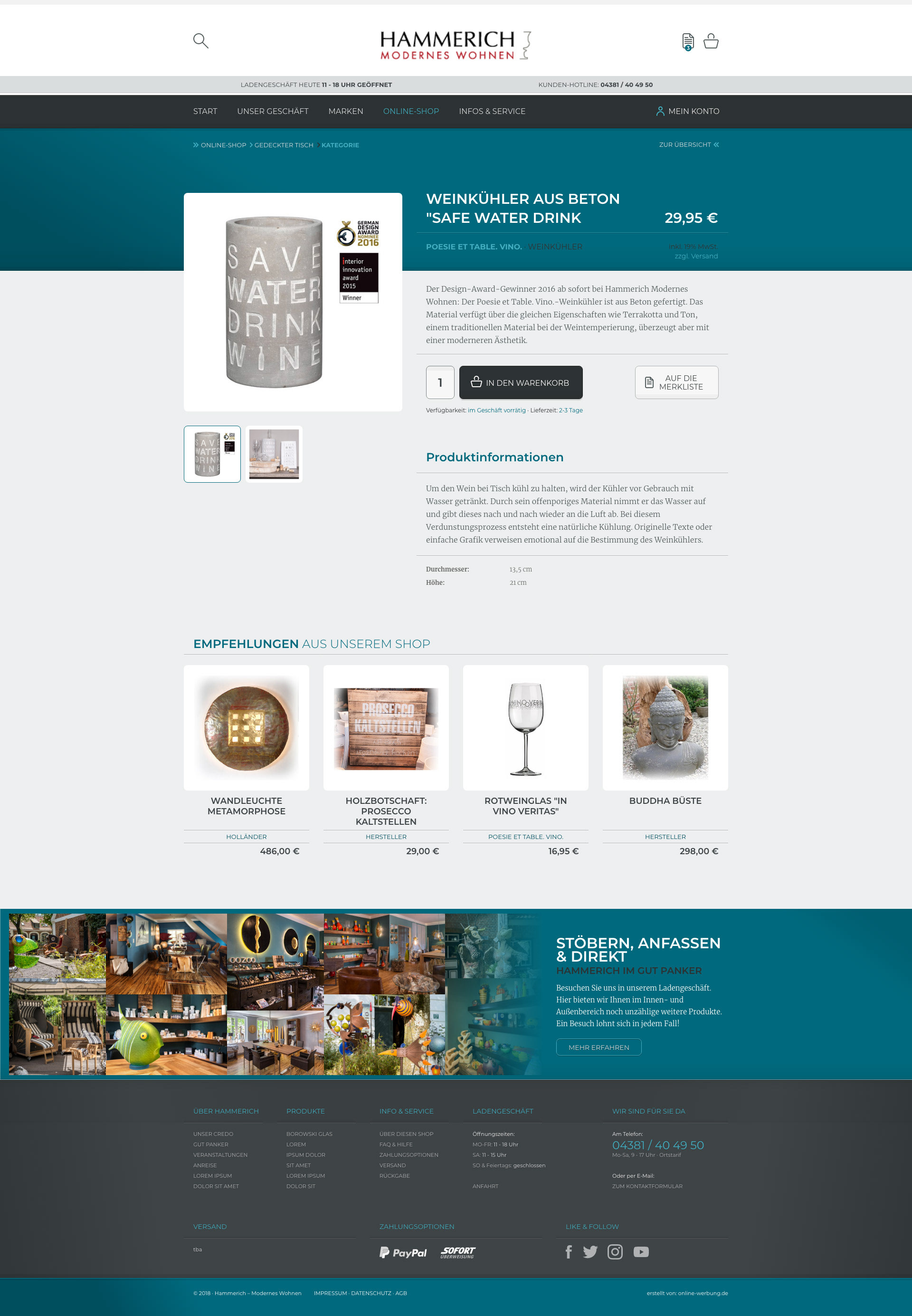 Nachfolgend dann der adaptierte Shop, in dem das weitere Sortiment von Hammerich vorgestellt wird. Diese Variante des Shops bleibt aber einem einheitlichen Farbkonzept treu.